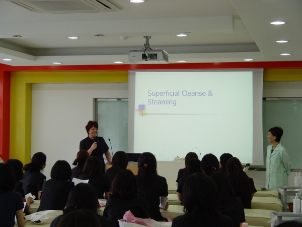 브래드포드대학 피부미용과 크리스틴 교수님의 수업모습입니다.