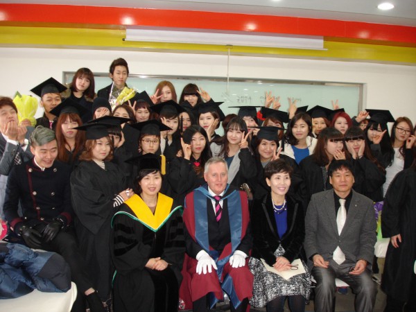 브래드포드대학의 국제처장과 학과교수님,학생들과의 졸업기념
