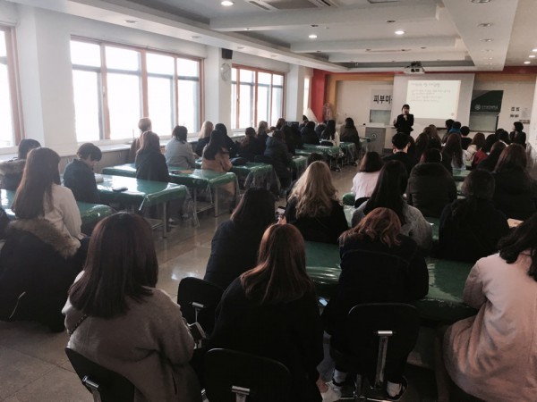 2017년 2월 24일 신입생 오리엔테이션이 있었습니다. 입학식 후 진행된 통합인성 진로지도교육으로 우리학과 졸업생인 지누스코리아 김미애 차장님을 모시고 특강을 진행하였습니다.