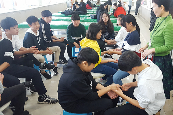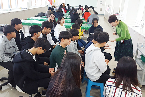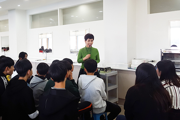 11월 1일 창의체험활동 프로그램으로 덕산중학교 학생들이 우리과 피부관리실습실을 방문해주었습니다. 하명희 교수님 지도로 핸드마사지를 배워보고 서로 해보는 시간을 가졌습니다. 학생들이 곧 잘 따라해서 미니 대회를 열어보았습니다.