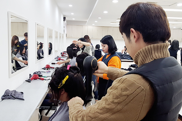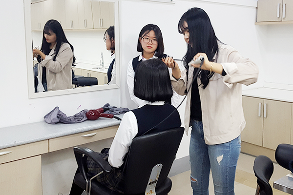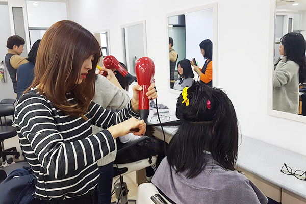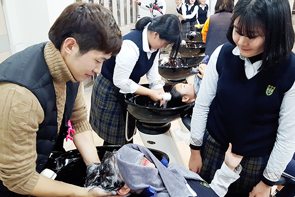 11월 10일 삼현여중 학생들이 우리 학과 헤어 실습실에 방문해주었습니다. 봉재환교수님의 지도하에 2학년 언니들과 함께 샴푸 드라이에 대해 체험해보고 직접 해보기도 하는 시간을 가졌습니다.