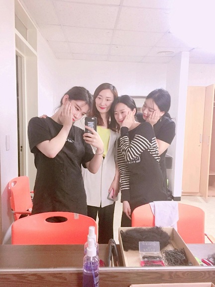 분장에 참여한 2학년 김민영, 조영인, 장지우, 박유경, 임동민 학생과 헤어연출에 참여한 2학년 임민정, 조아영, 김기민, 황채은 학생 모두모두 수고많았어요~