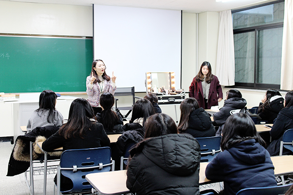 12월 1일 창의체험프로그램으로 진주여중 학생들이 찾아왔습니다. 김은희 교수님께서 지도하시는 메이크업, 봉재환 교수님께서 지도하시는 헤어로 나뉘어서 교수님 지도하에 언니, 오빠들과 체험해 보는 시간을 가졌습니다. 즐거운 시간이 되었으면 합니다.