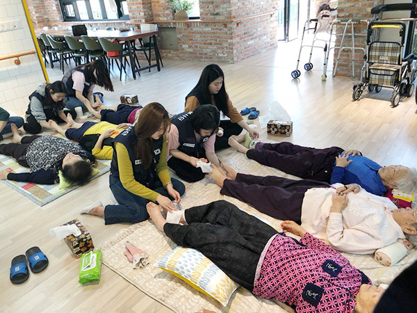 4월 28일 우리과 피부봉사동아리 '힐링케어' 학생들이 드림노인복지센터를 찾아 어르신들에게 손마사지 발마사지 봉사활동을 실시하였습니다. 마음까지 너무 예쁜 학생들입니다 ^^