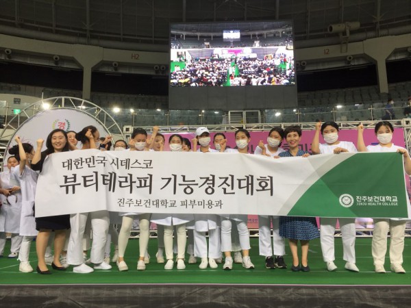 전국에서 820여명이 참가한 명실상부한 최고의 대회로 진주보건대학교 피부미용과는(하 명희교수) 17명이 참가하여 2학년에 재학 중인 안 다슬 학생이 보건복지부장관상을 심 재희 학생이 국제 CIDESCO 한국지부 회장상을 비롯하여 참가학생 전원이 입상의 영예를 누려 최강 피부미용과의 저력을 발휘하였다.