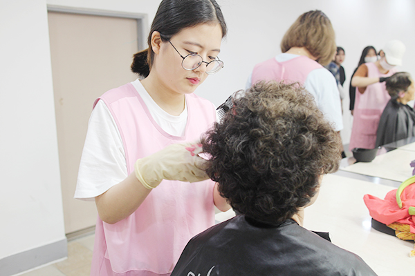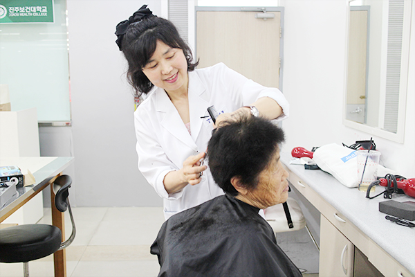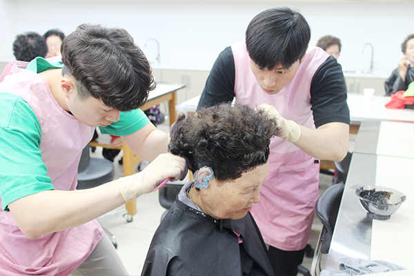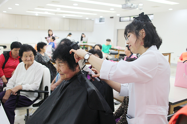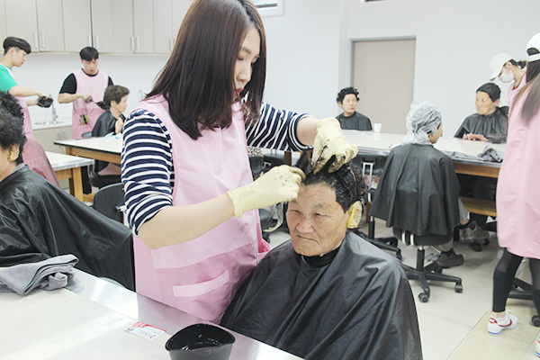 2018년 5월 18일 우리과 헤어메이크업실습실에서 상봉동에 거주하시는 어르신 초청하여 염색, 커트 등 미용 나눔 봉사시간을 가졌습니다.