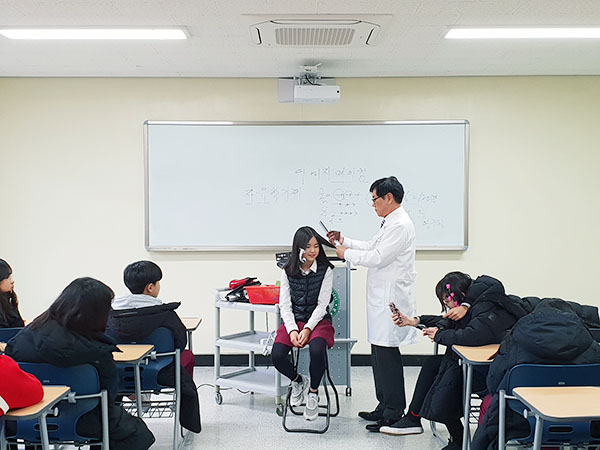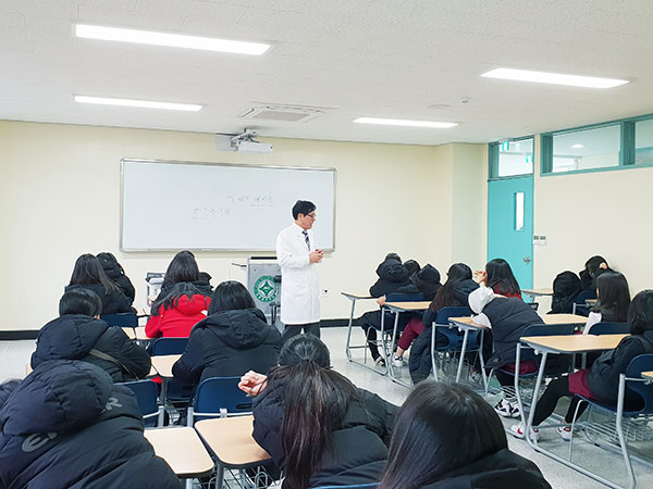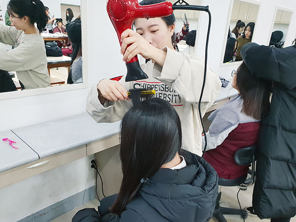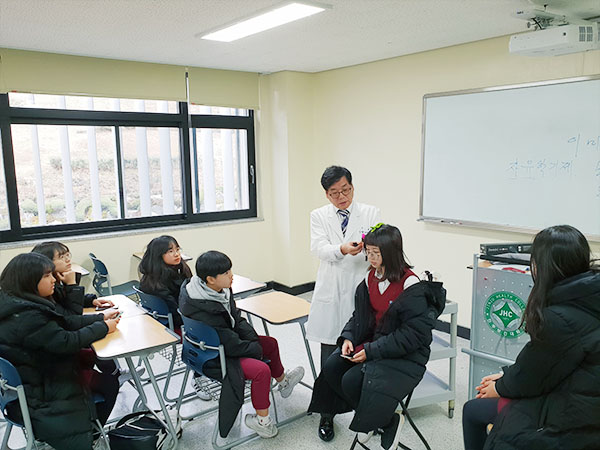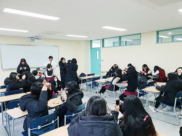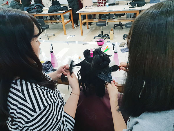 진주여중 학생들이 우리학과를 찾아왔습니다. 봉재환교수님과 함께 롯드를 이용한 펌 체험과 배선향교수님과 1학년 B반 학생들과 미용시술 체험을 하였습니다. 즐거운 시간이 되었으면 좋겠습니다.