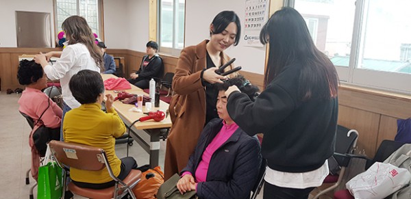 천전동 주민센터에서 열린 어르신 장수사진 메이크업 봉사활동에서 우리학과 재학생들이 헤어, 메이크업 봉사에 참여하였습니다. 어르신들과 함께 즐거운 시간이었습니다.
