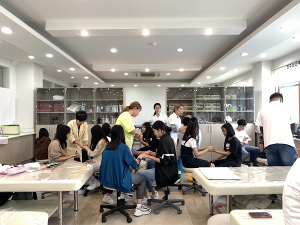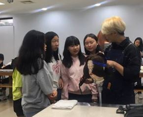개양중학교에서 창의체험으로 헤어는 마네킹으로 대학생 언니오빠들이 드라이하는 것을 보고 배우는 시간을 가지고. 피부는 핸드마사지를 배워 친구와 서로의 손을 마사지를 해보는 시간을 갖었습니다.