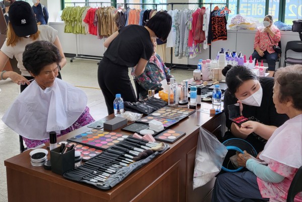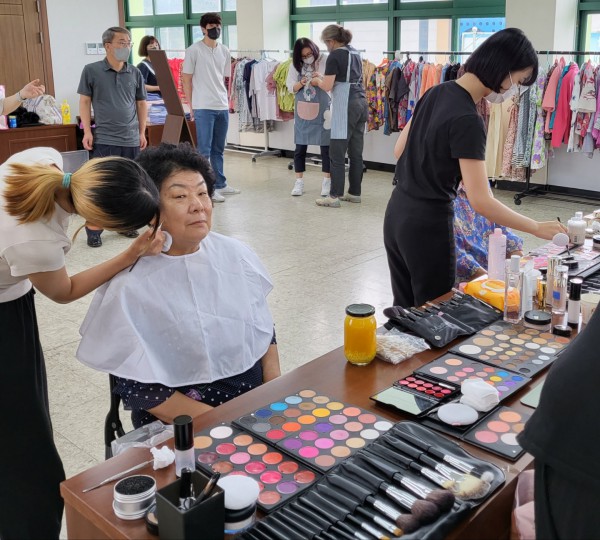 진주보건대학교 뷰티디자인과 학생들은 2022년 7월23일 남해 상주면행정복지센터에서 진행된 봉사활동 Day에 장수사진촬영을 위한 메이크업 재능기부를 했습니다.